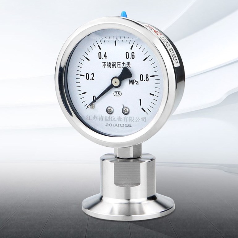 卫生隔膜压力表包括平常卫生隔膜压力表,圆螺母型卫生隔膜压力表,夹式卫生隔膜压力表等。卫生隔膜压力表是由通用压力表和隔膜隔离器构成的隔膜压力表。兼具加工现场拆装快捷简便,不易污染,易清洗,安全确实等优点,可以满足药品生产质量规格要求(GMP)。在药品的过程中用到,食品,饮用水,水处理和兼具用以隔膜米的米。耐蚀性的卫生要求等行业可以通过适当地选取膜片,法兰和密封环的材料保证隔膜材料:316,316l。法兰材料:316,316l。密封环材料:硅橡胶,聚四氟乙烯。