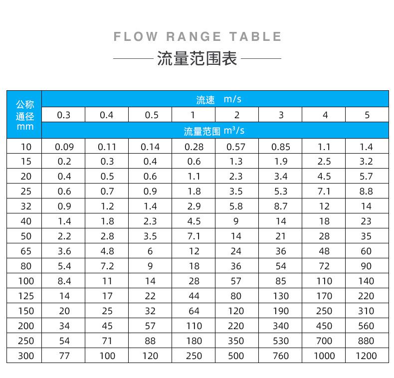 - 测量范围0.5~10m/s(流量单位可选择)(m3/h)
